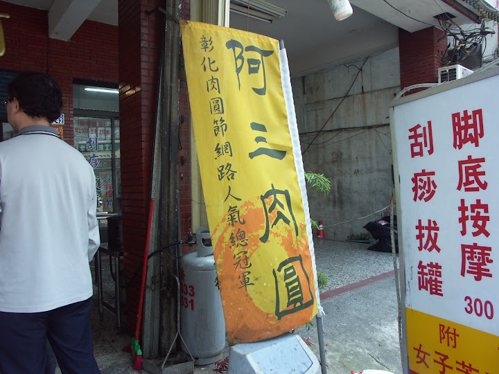 參觀完大佛之後又繼續往上走了一小段,在一架展示飛機(見相簿)的小公園休息片刻之下才開始步行下山。因為我一直嚷嚷著要吃彰化肉圓,下山後就直接去吃「阿三肉圓」。彰化的肉圓真的要特別介紹一下,因為實在美味難忘懷。一般台北台中吃到的肉圓大部分都是用蒸的居多,甚至有那種皮一切開料全散開的糟糕肉圓,但是彰化肉圓是用炸的,皮酥料多又實在,有大塊的肉、香菇、芋頭、鵪