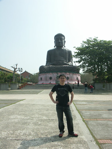 所以我們就在毒辣辣的太陽的伺候下,終於抵達了大佛的位置。不曉得為什麼,我一直以為大佛是金色的,當我發現他是黑色的時候其實還滿高興的,因為金色的大佛感覺很俗。聽說這座大佛是全台灣第一座,歷史應該相當悠久了,不過詳細的情況敬怡也說不清楚。除此之外,大佛的內部是可以參觀的,總共五層樓,一樓擺放了許多佛教的小冊子還有自由奉獻的香油箱,其他樓層則也許多的彩色雕像,一一敘說那些著名的佛教典故。雖然大佛具有相當崇高的宗教象徵意義,但是氣氛卻不像天后宮那樣道地,其一是因為信徒和遊客不如天后宮多,其二是內部裝潢過於現代新穎,喪失了該有的神聖莊嚴感。